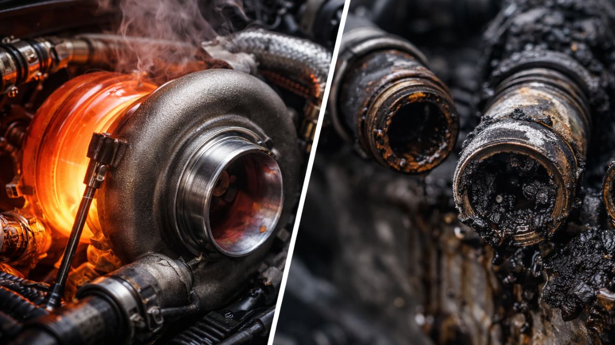 El problema llega cuando paras el motor justo después de exigirle. De golpe, se detiene la bomba de aceite y desaparece esa película de lubricación continua. El turbo aún está caliente y, aunque su giro cae rápido, el calor residual permanece. Ese calor “cuece” el aceite que se queda atrapado en el cuerpo del turbo y en las líneas de alimentación. Con el tiempo, puede formarse carbonilla, una especie de barniz duro que estrecha conductos y acelera el desgaste de casquillos y retenes.